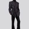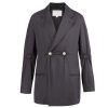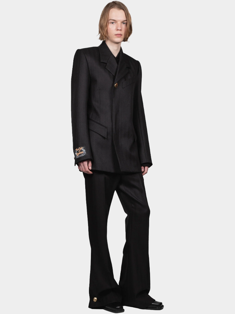 골든 버튼 핏 스트라이프 재킷 – 블랙 테일러링 울 AW25 BL 002 A