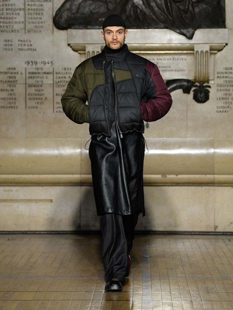 니트 컬러 블록 퍼퍼 재킷 (자만 카키)