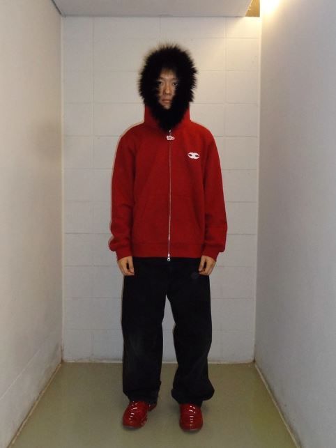 버건디 퍼 후드티
